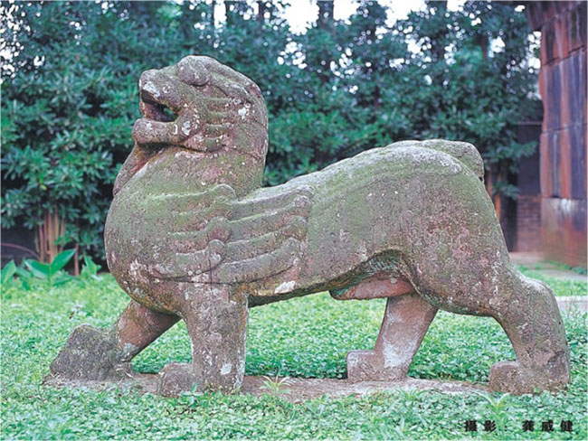 石獸和戰(zhàn)國時的青銅翼獸有繼承的關系,形狀上多似龍虎又如獅,全身從頭到尾仍有那起伏流轉的強健線條。漢代從西域傳入的獅子因為其勇猛而成為吉祥之獸,受到歡迎,石雕自然要和龍虎結合為一了。當然,也有造型較明顯的石獅子。