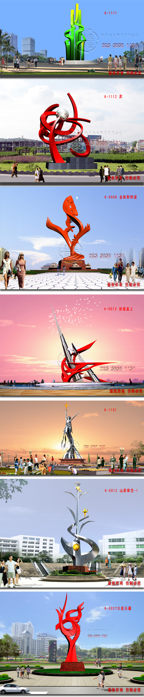 不銹鋼雕塑城市雕塑抽象雕塑東郭雕塑品創(chuàng)作雕塑果實(shí)雕塑先登雕塑品東郭雕塑家、雕塑效果圖大型雕塑效果圖雕塑設(shè)計(jì)南京先登雕塑有限公司產(chǎn)品采用中國(guó)精選的天然礦石材料,將數(shù)十年工藝經(jīng)驗(yàn)融入現(xiàn)代工業(yè)技術(shù)及人力資源優(yōu)勢(shì)創(chuàng)造出高質(zhì)量且價(jià)位合理的藝術(shù)精品,目前公司相關(guān)產(chǎn)品有浮雕、擺設(shè)品、文化石、羅馬柱、花缽、花盆、噴水池、噴泉景觀、園林景觀、砂巖雕塑、砂巖浮雕、砂巖工藝品、藝術(shù)砂巖、涼亭等高達(dá)上萬(wàn)種各類產(chǎn)品,豐富的內(nèi)容等待著品味不凡的您前來(lái)鑒賞,亦可根據(jù)客戶的要求加以開(kāi)發(fā)設(shè)計(jì)、生產(chǎn)以實(shí)現(xiàn)客戶們的獨(dú)特想法。獲得客戶的肯定和支持是本公司全體員工最大之原動(dòng)力,以優(yōu)質(zhì)的服務(wù)為客戶創(chuàng)造價(jià)值,是我們的理念,也希望在邁向22世紀(jì)的途中,能為生活品味的提升盡一份心力。 本公司以開(kāi)拓高品位,高質(zhì)量的材料,提升生活品位為目標(biāo),摯誠(chéng)為閣下開(kāi)創(chuàng)更廣闊的裝飾天地。無(wú)論閣下前來(lái)選購(gòu)現(xiàn)有產(chǎn)品,還是來(lái)圖訂造,我們的設(shè)計(jì)人員、制作人員都將提供誠(chéng)摯的專業(yè)服務(wù)。